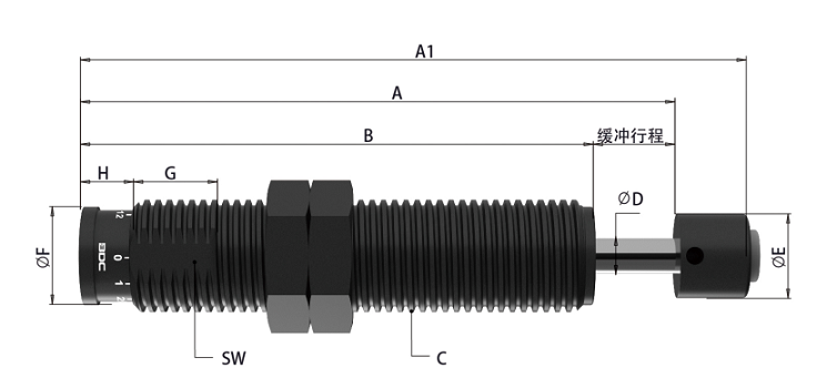 小型可調(diào)節(jié)液壓緩沖器BD10~BD20